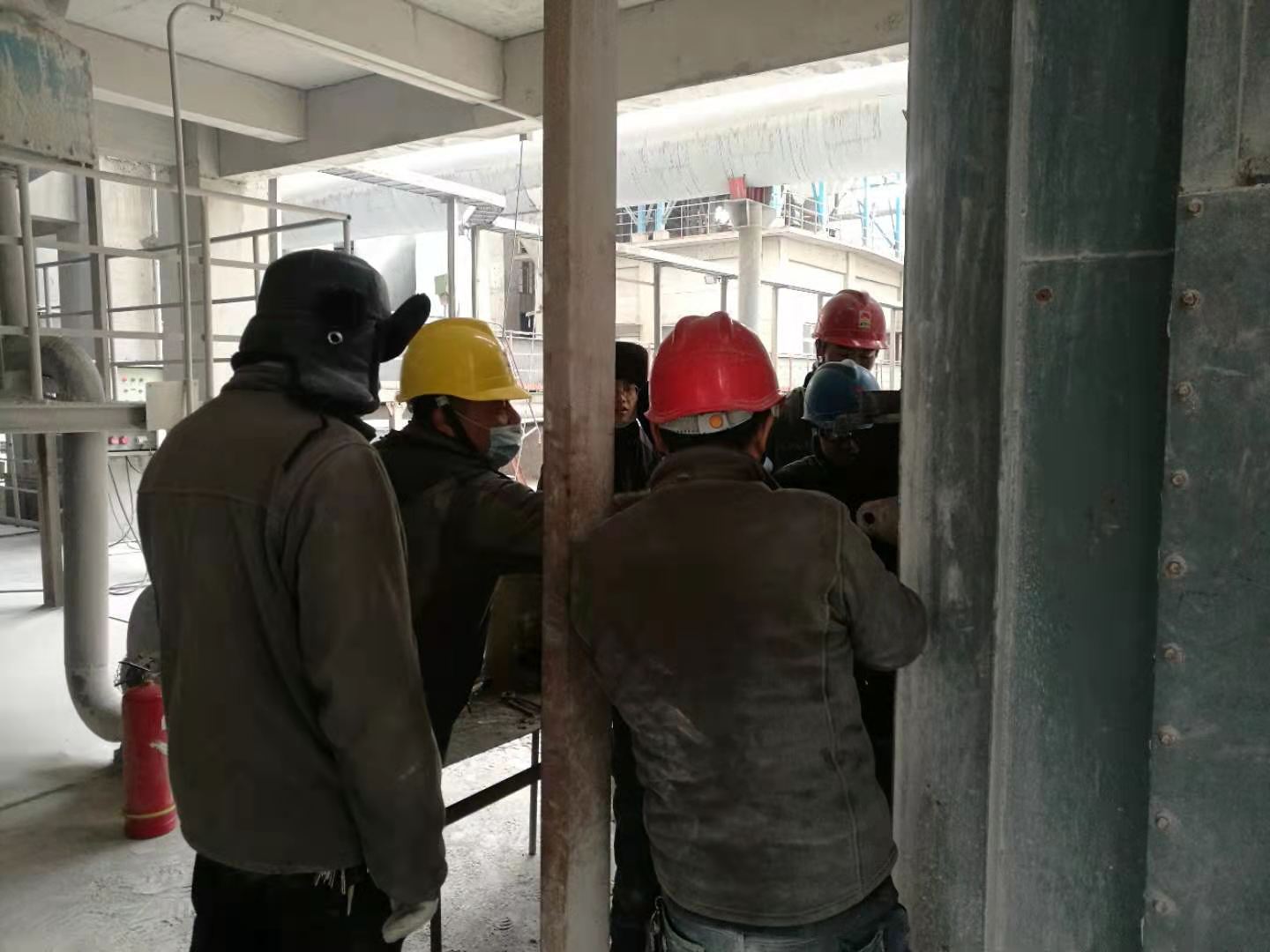 檢修作業全程跟蹤,一天一夜檢修下來,有睡在辦公室沒回家的,也有吃飯就在作業現場……比比皆是。總經理吳紅衛更是如此,一個作業一個作業現場轉上轉下,從2026提升機作業點到回轉窯主傳減速機,再到篦冷機、煤磨、烘干破、預熱器、2301、2323、2401提升機以及高溫風機、回轉窯窯內及燃燒器檢修現場,指導,建議,一直值守在現場,忙著跟工人們同時收工,一整晚都未歸宿就寢室。工人們,裝置長擔心他的身體,時常提醒讓他回去休息一下,喝口水,而他放心、安慰大家說,“我和大家一樣的心情,早完工,產量就能早生產一點,我們后續生產就能輕松一點,大家加油”。一直以來,他和這個班子成員、工人們一起頂著嚴寒,一直堅守在現場安全履職和協調把控檢修進度,不厭其煩的一次次的詳細交底,直到一項一項設備檢修更換完畢。
