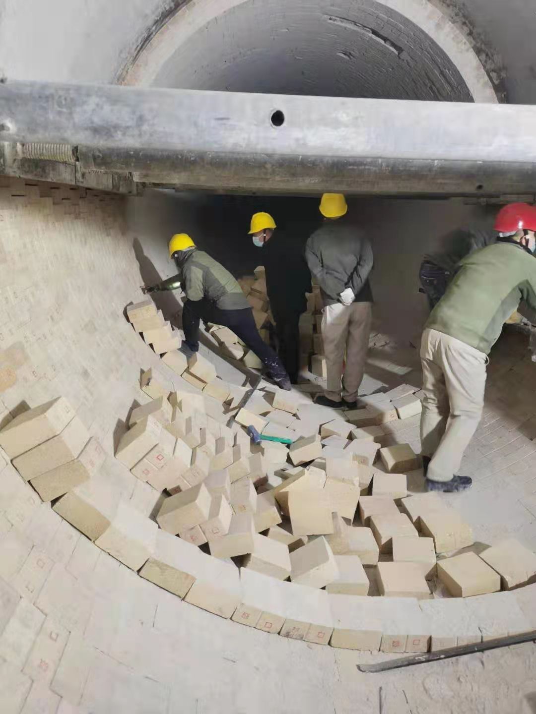 入窯鉸刀更換結(jié)束后,幾名維修工再一次細(xì)致的對鉸刀附屬設(shè)備進(jìn)行檢查,確保回轉(zhuǎn)窯開啟后入窯鉸刀能夠長周期穩(wěn)定運(yùn)行。回轉(zhuǎn)窯內(nèi),平時(shí)的崗位巡檢操作工變身砌磚師傅,對窯磚進(jìn)行砌筑。大家配合默契,像極了從事砌磚行業(yè)多年的老師傅。窯頭平臺上,頂著寒風(fēng)搬磚的是各裝置協(xié)調(diào)的員工。一方有難八方支援,不管回轉(zhuǎn)窯還是電石爐,都是資源再生公司的設(shè)備。哪兒檢修,其他裝置馬上協(xié)調(diào)人員配合。一次檢修就是一次考驗(yàn),不僅要保安全保進(jìn)度,還要保證檢修質(zhì)量。各級管理人員在保證安全的前提下對窯磚砌筑質(zhì)量進(jìn)行檢查,確保檢修質(zhì)量。