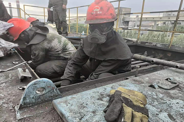 滿面的灰塵,擋不住他們前進(jìn)的腳步;滿眼的疲憊,擋不住他們對(duì)工作的認(rèn)真負(fù)責(zé);一雙雙沾滿油污的雙手、一身身掛滿油漬的衣服,都訴說著他們對(duì)工作的無私奉獻(xiàn)。還記得在蘭炭除塵器布袋著火時(shí),他們加班加點(diǎn)的更換布袋,在最后大家一起吃飯的時(shí)候,你笑笑我,我笑笑你。因?yàn)樗麄冎挥醒例X是白的,其他地方都是黑乎乎的一片。蘭炭烘干爐大檢修時(shí),時(shí)間緊任務(wù)重,他們時(shí)常穿著隔熱服到里面進(jìn)行工作,當(dāng)看到他們出來時(shí),已經(jīng)是滿頭大汗,衣服早已濕透。寒冷的冬夜,當(dāng)設(shè)備出現(xiàn)故障時(shí),他們爬出溫暖的被窩早已成了習(xí)慣,為了穩(wěn)定生產(chǎn)需要,他們必須往前沖,以最快的速度去縮短故障的時(shí)間;酷暑的夏天,他們頂著高溫在哪里一點(diǎn)一滴補(bǔ)漏著缺陷;漆黑冷雨殘?jiān)露鴼w,這都已成為了常事。但就是有了這份對(duì)工作的無私付出,我們的生產(chǎn)才得到了保障。