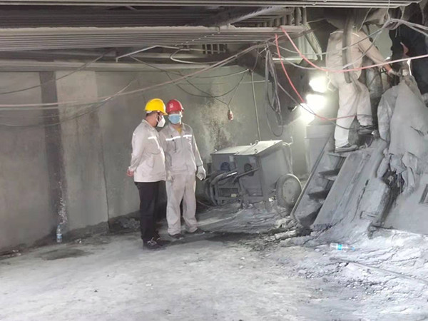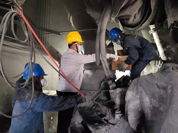 檢修開始時對現(xiàn)場可能存在的危險有害因素進(jìn)行分析評估,制定檢修方案,落實(shí)安全應(yīng)急救援措施,壓實(shí)各級管理人員責(zé)任,要求相關(guān)單位人員深入檢修現(xiàn)場,積極參與檢修中,檢修現(xiàn)場到處都是忙碌的身影,都記錄著一個動人的故事,也是一幅描繪生動的人物素描,總經(jīng)理王鐵鎖不辭勞累奔波在凈化系統(tǒng)與爐面更換設(shè)備現(xiàn)場,落實(shí)安全措施同時對安裝下料柱人員,底部環(huán)的規(guī)范性做出指導(dǎo)。