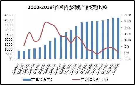 據筆者統計,2019年國內燒堿行業計劃投產產能為226.5萬噸。2019年4月,寧夏金昱元12萬噸燒堿投產(總產能48萬噸),其他廠家產能穩定。截至2019年6月,國內燒堿生產企業為161家,產能達到4270.5萬噸,同比增長0.28%,增速有所放緩。從市場情況來看,由于今年燒堿價格再度陷入低迷,燒堿廠家投產積極性有所下降,實際投產有所延后。