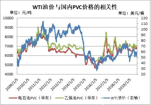長期來看,進口貨源增加,乙烯法PVC消費占比或上升,原油價格的變化對國內PVC市場的影響增大,國內PVC與國際原油價格的相關性上升。
