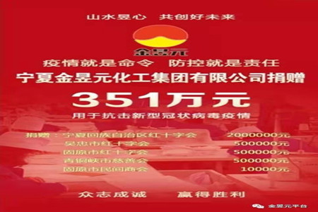 2月月5日,集團公司及所屬子公司向寧夏回族自治區紅十字會、吳忠市紅十字會、固原市紅十字會、固原市民間商會、青銅峽市慈善會共捐贈351萬元現金,為抗擊新冠病毒肺炎疫情提供支持。
