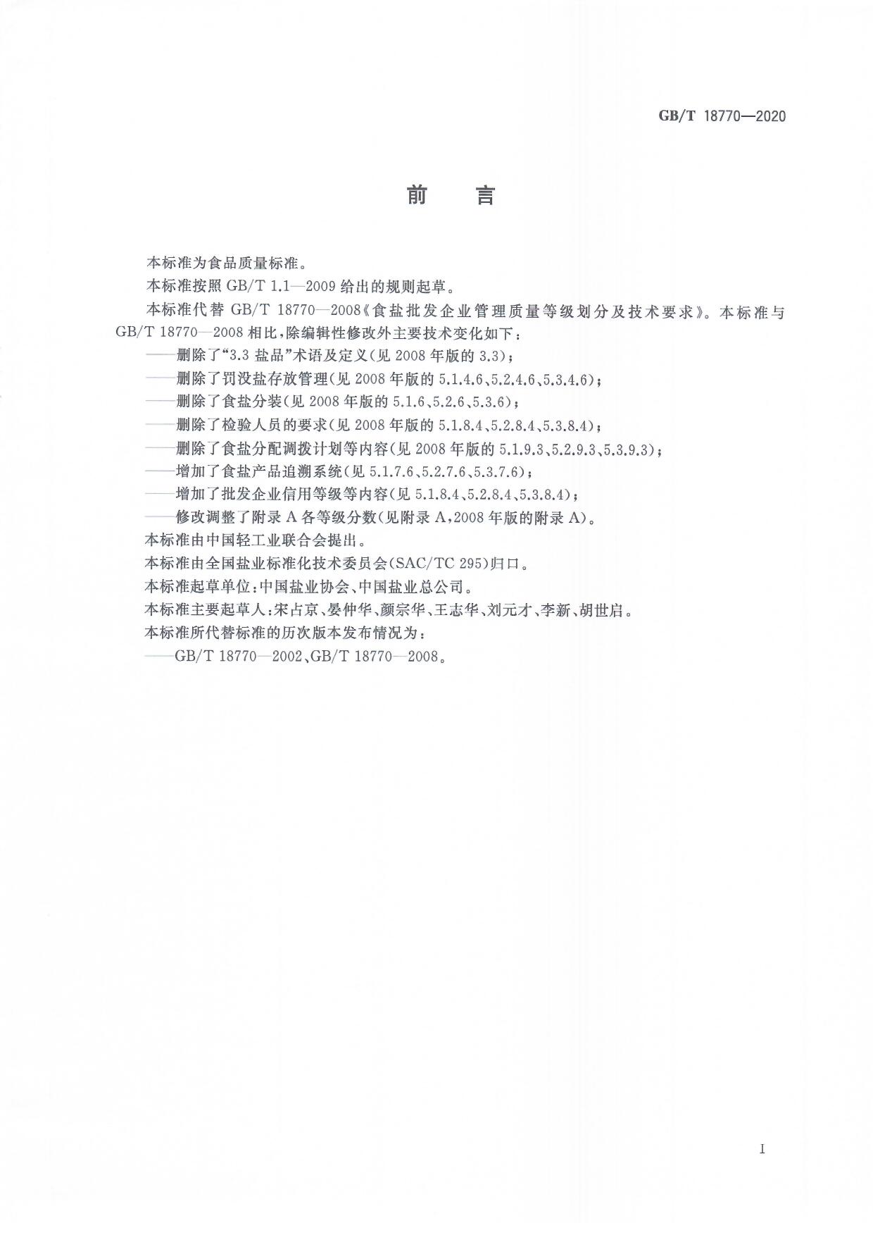 食鹽批發企業管理質量等級劃分及技術要求(GB/T 18770-2020)