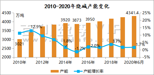 由此可見,2020年全國總產能實現穩步增長,但整體增速相比同期有所下降,受全球公共衛生事件沖擊,燒堿下游需求表現不佳,整體行情不甚樂觀。出于整體需求和供需平衡考量,預計未來產能增速將有放緩表現,具體發展變化還需關注后續全球公共衛生事件處置情況及市場行情實時變化。