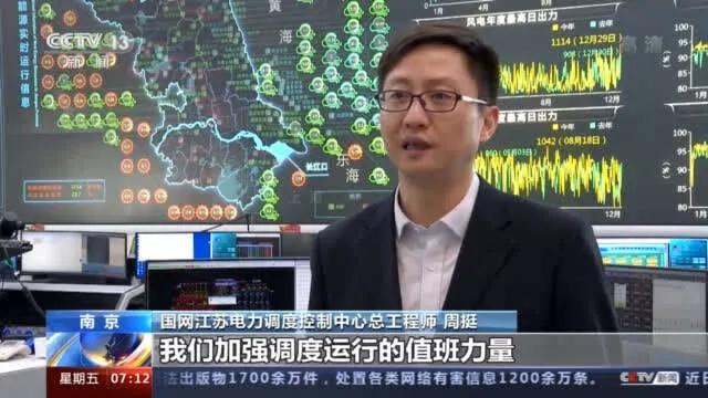國網江蘇電力調度控制中心總工程師 周挺:隨著用電負荷的走高,我們加強調度運行的值班力量,做好針對性的事故預案,全力確保江蘇電網安全穩定運行與電力有序可靠供應。