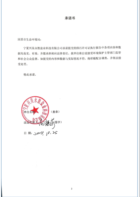 寧夏興昊永勝鹽業科技有限公司2024年第3季度排污許可執行報告