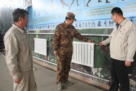 今年剛剛?cè)攵鞖鉂u冷,集團(tuán)公司領(lǐng)導(dǎo)接到了駐地部隊(duì)電話,請(qǐng)求協(xié)助為部隊(duì)新增冬訓(xùn)館安裝暖氣。聽(tīng)到這一消息,公司領(lǐng)導(dǎo)不顧生產(chǎn)任務(wù)緊,維修人員緊缺等現(xiàn)實(shí)困難,立刻選派精干維修力量進(jìn)駐部隊(duì)施工安裝。
